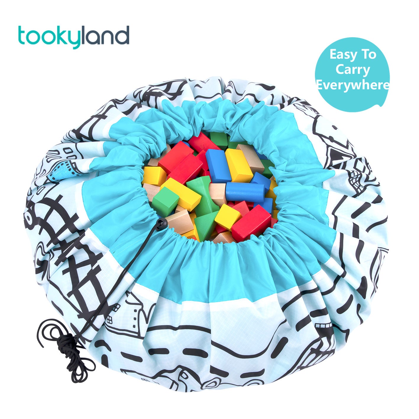 Cada alfombra de juego 3 en 1 de Tookyland está hecha de un tejido resistente al agua y cuenta con un cordón para facilitar su empaquetado.