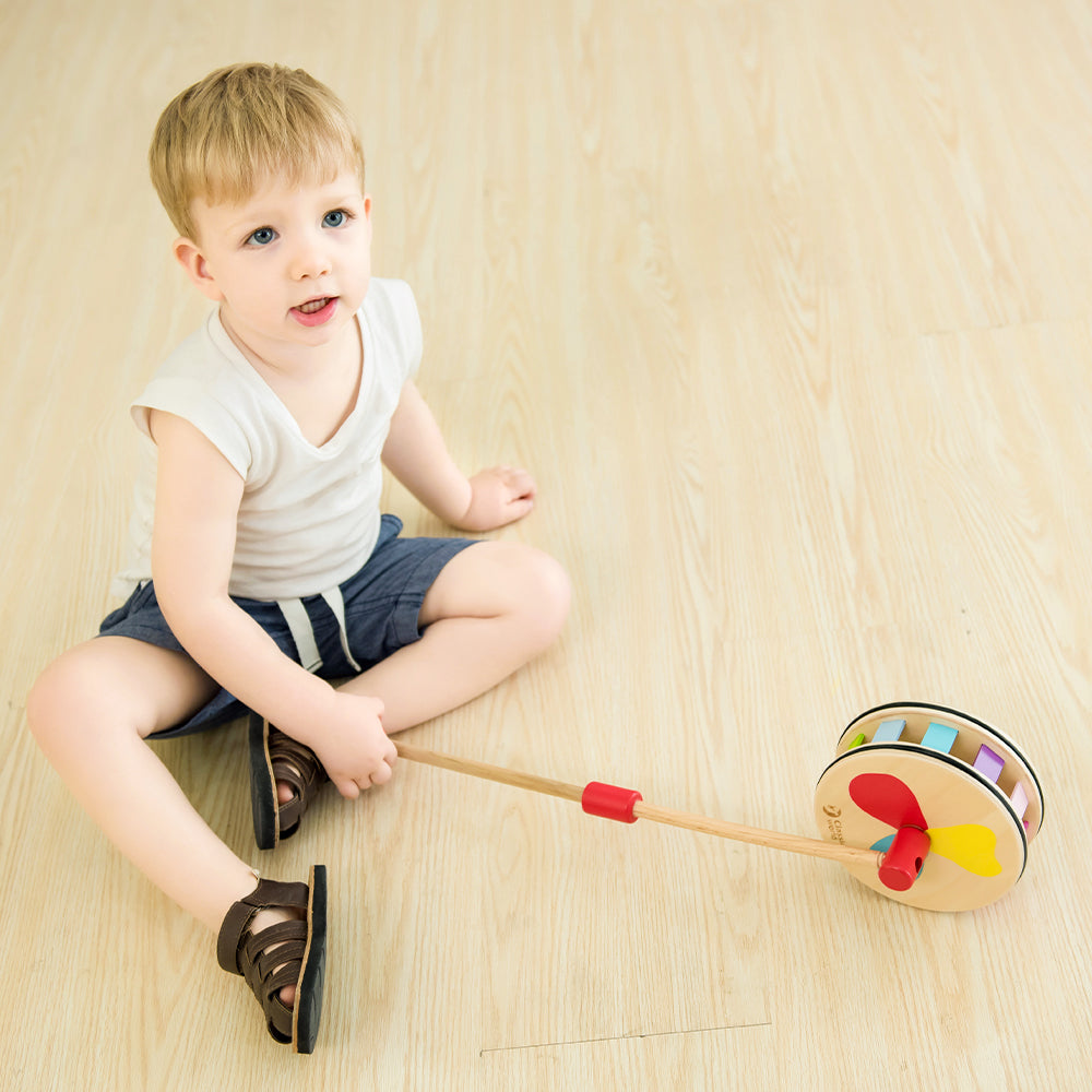Cuando tu pequeño rueda el juguete por el suelo, las coloridas bolas en su interior crean un sonido divertido que los llenará de alegría. Agarradera antideslizante.
