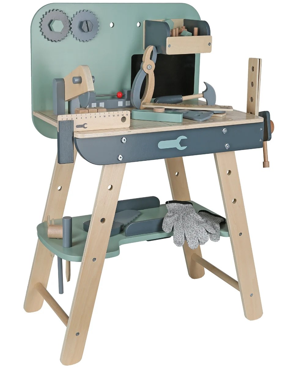 Esta banca de herramientas mediana ofrece un espacio seguro y divertido para que desarrollen habilidades mientras juegan. Pensada para fomentar la creatividad y la coordinación, permite a los pequeños organizar y manipular sus herramientas de manera práctica y accesible.