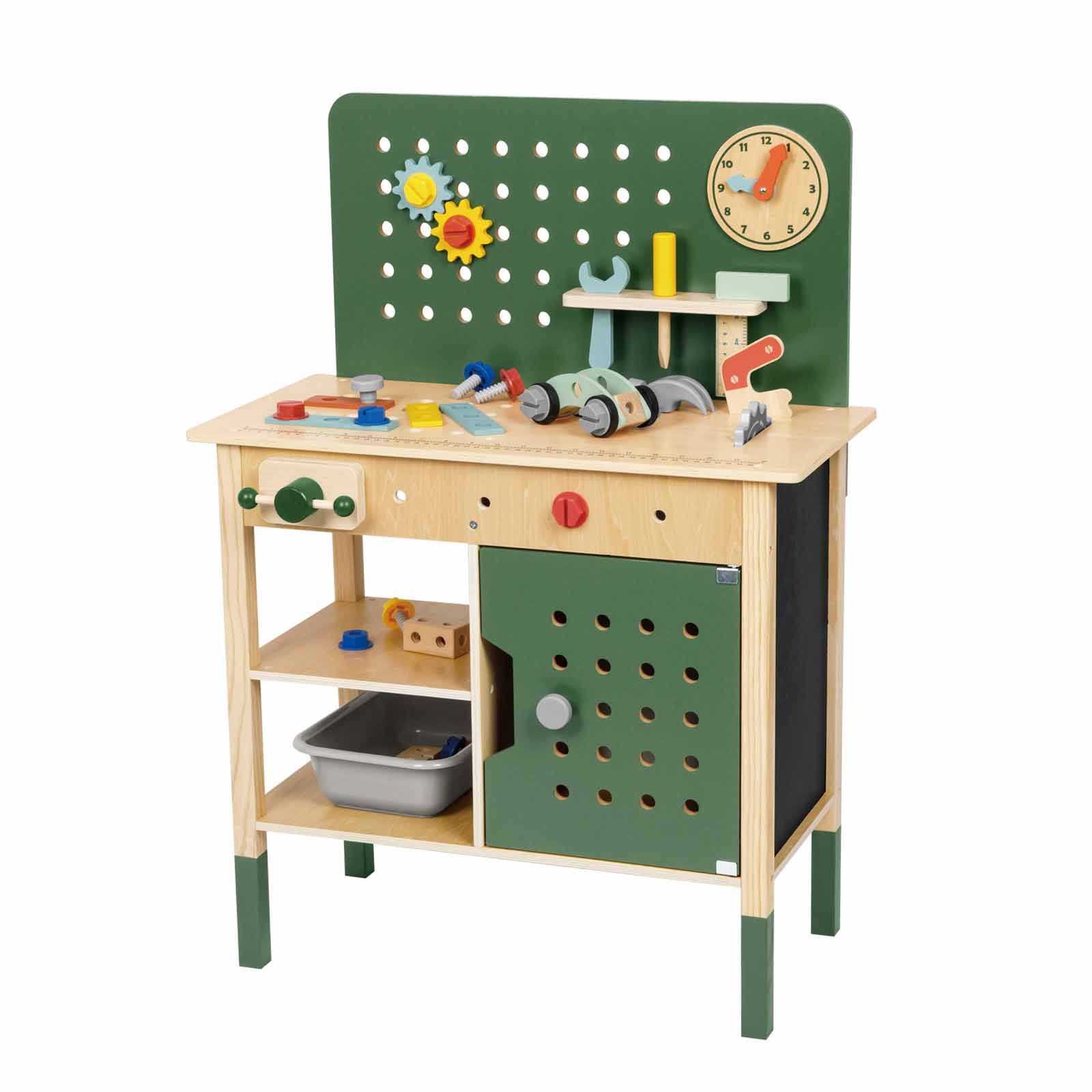 Ideal para que los pequeños exploren su imaginación mientras aprenden el uso básico de herramientas en un entorno seguro y educativo. Su construcción en madera garantiza resistencia y un tacto natural, promoviendo un juego práctico y realista. 🪚✨
