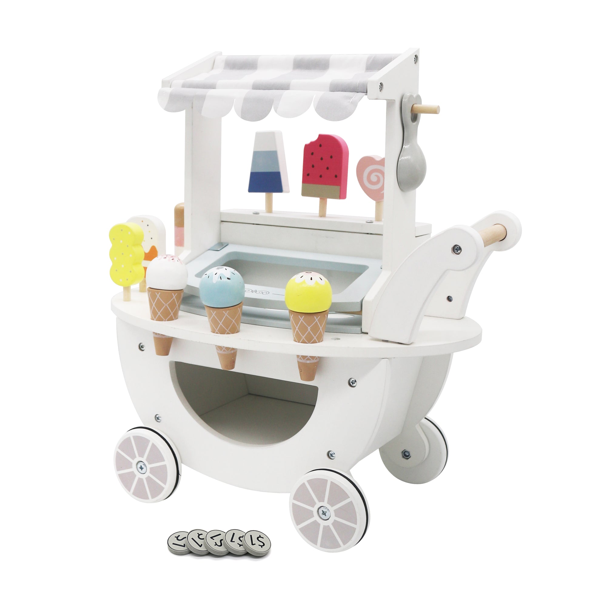 Este nuevo carrito de helados de madera está diseñado para niños ofreciendo horas de juego de simulación y creatividad. Ideal para estimular la imaginación, la coordinación y las habilidades sociales mientras recrean divertidas situaciones de venta de helados.
