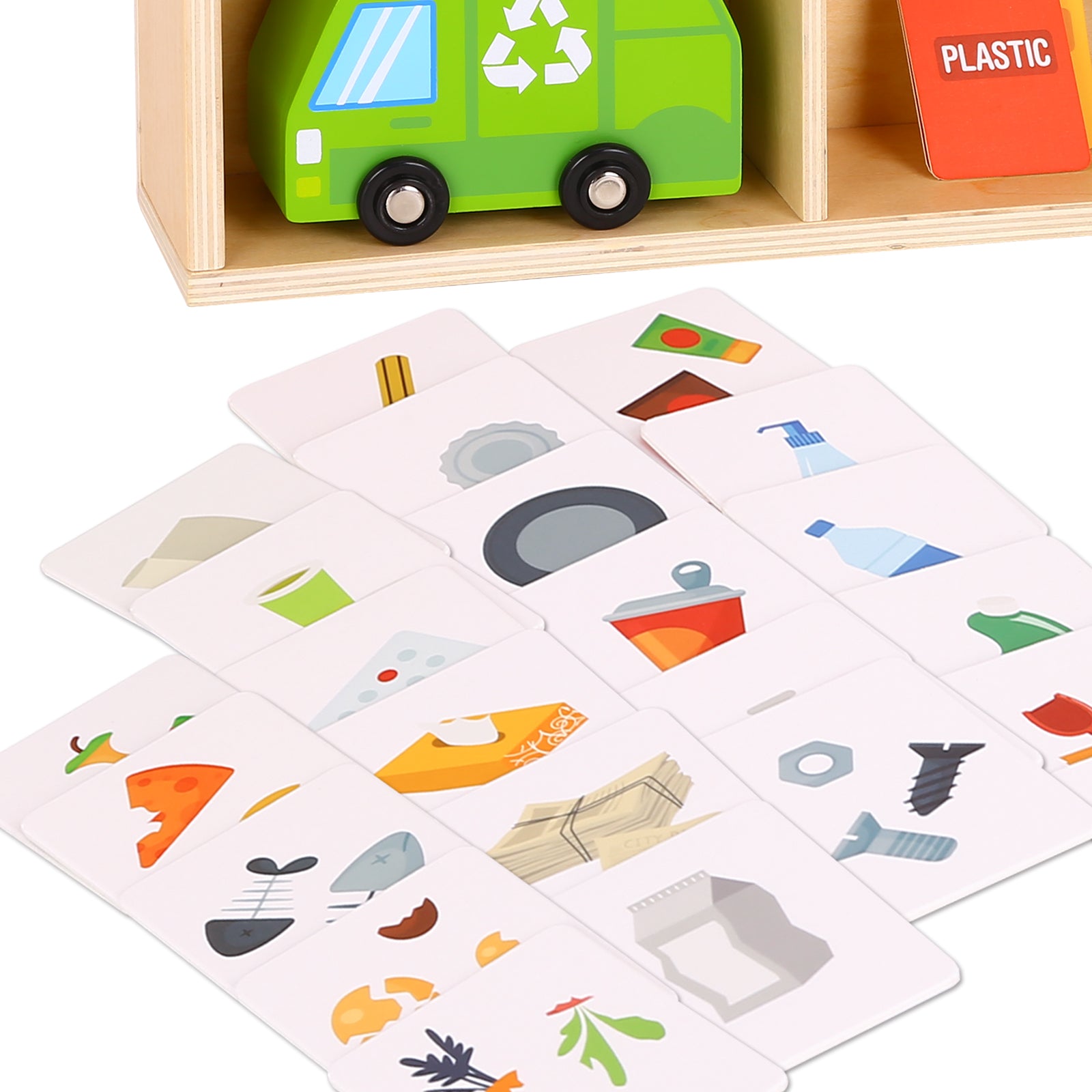 Este juguete es una excelente manera de enseñar a los niños sobre la importancia del reciclaje y cómo clasificar los materiales adecuadamente para el proceso de reciclaje. Además, fomenta la conciencia ambiental y la responsabilidad social desde una edad temprana.