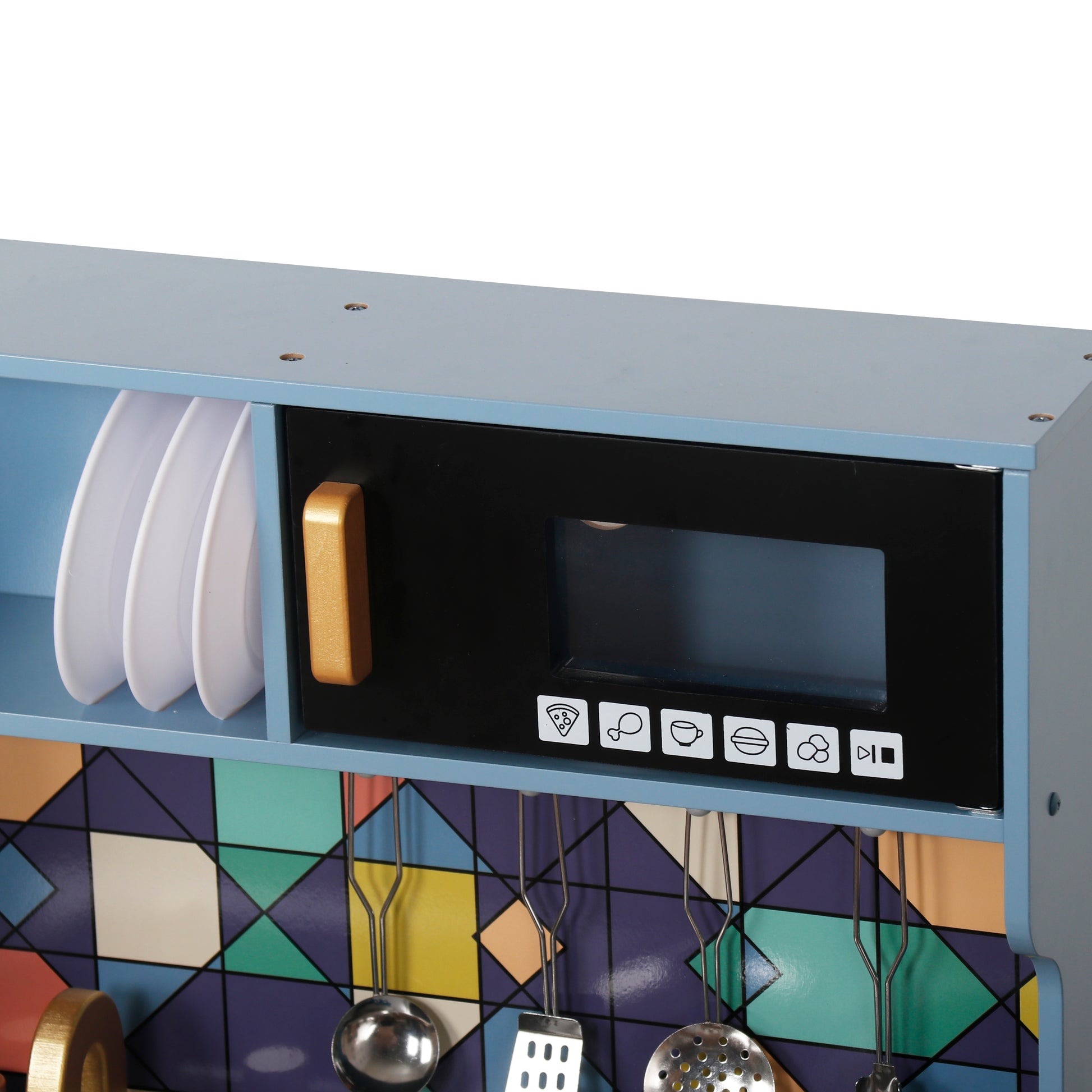 Con diseño realista y moderno, esta cocina infantil permite a los pequeños chefs vivir la experiencia de cocinar como en una cocina de verdad. Las puertas del horno, gabinete, refrigerador y microondas se abren y cierran, haciendo el juego mucho más interactivo.