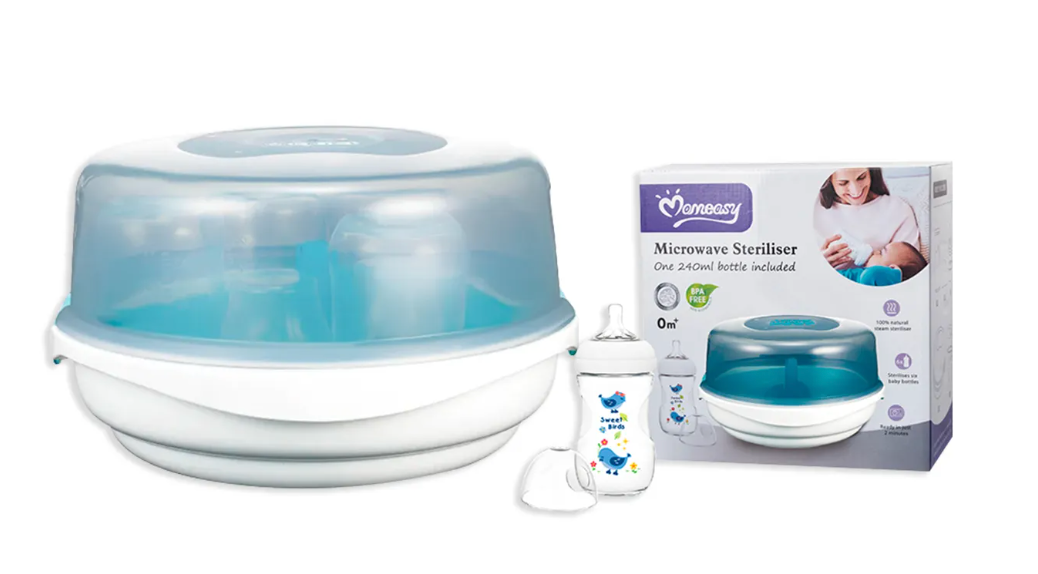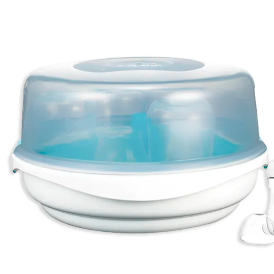 Diseñado para desinfectar de manera efectiva y rápida objetos como biberones, chupetes, extractores de leche, y otros artículos para bebés utilizando calor generado por el microondas.