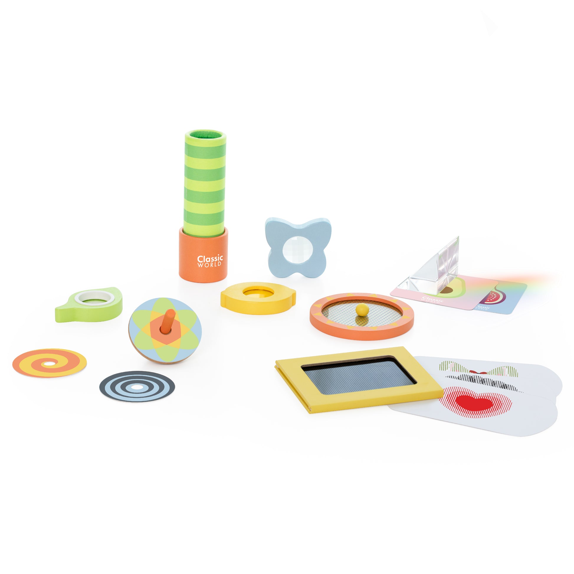 El set de Experimentos Ópticos de Classic World es una excelente idea de regalo para tu hijo. Productos de alta calidad, mejorados en todos los aspectos de la producción, introducirán a los niños al mágico mundo de las ilusiones ópticas. El set contiene 16 elementos diferentes, ¡y cada uno de ellos sorprenderá a tu hijo! Es una herramienta invaluable para los futuros científicos y jóvenes estudiantes, que fomenta la exploración, la creatividad y el aprendizaje práctico, promoviendo el amor por la alegría del descubrimiento. ¡Este juguete fusiona de manera perfecta la estética con la investigación científica, haciendo que sea atractivo y estimulante intelectualmente!