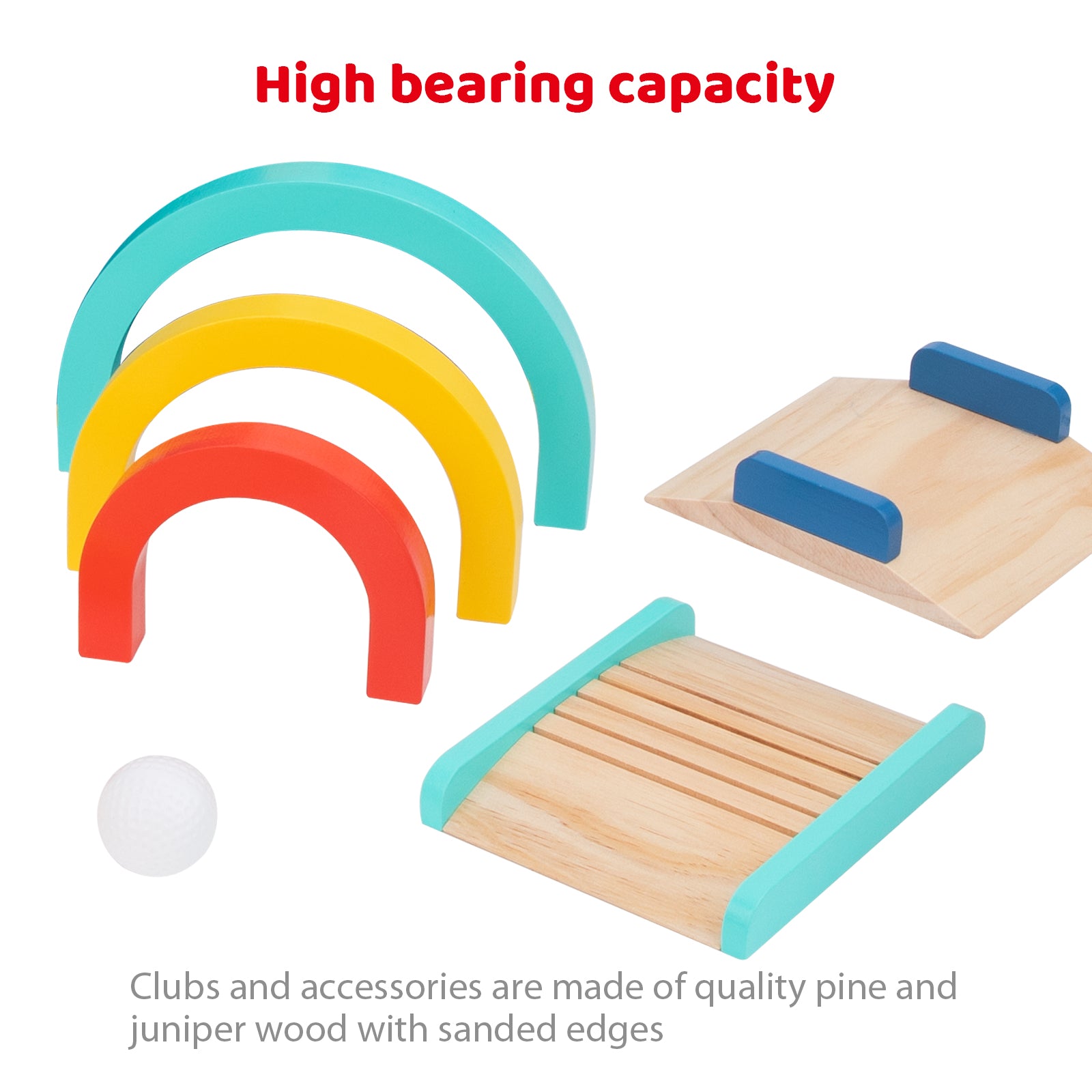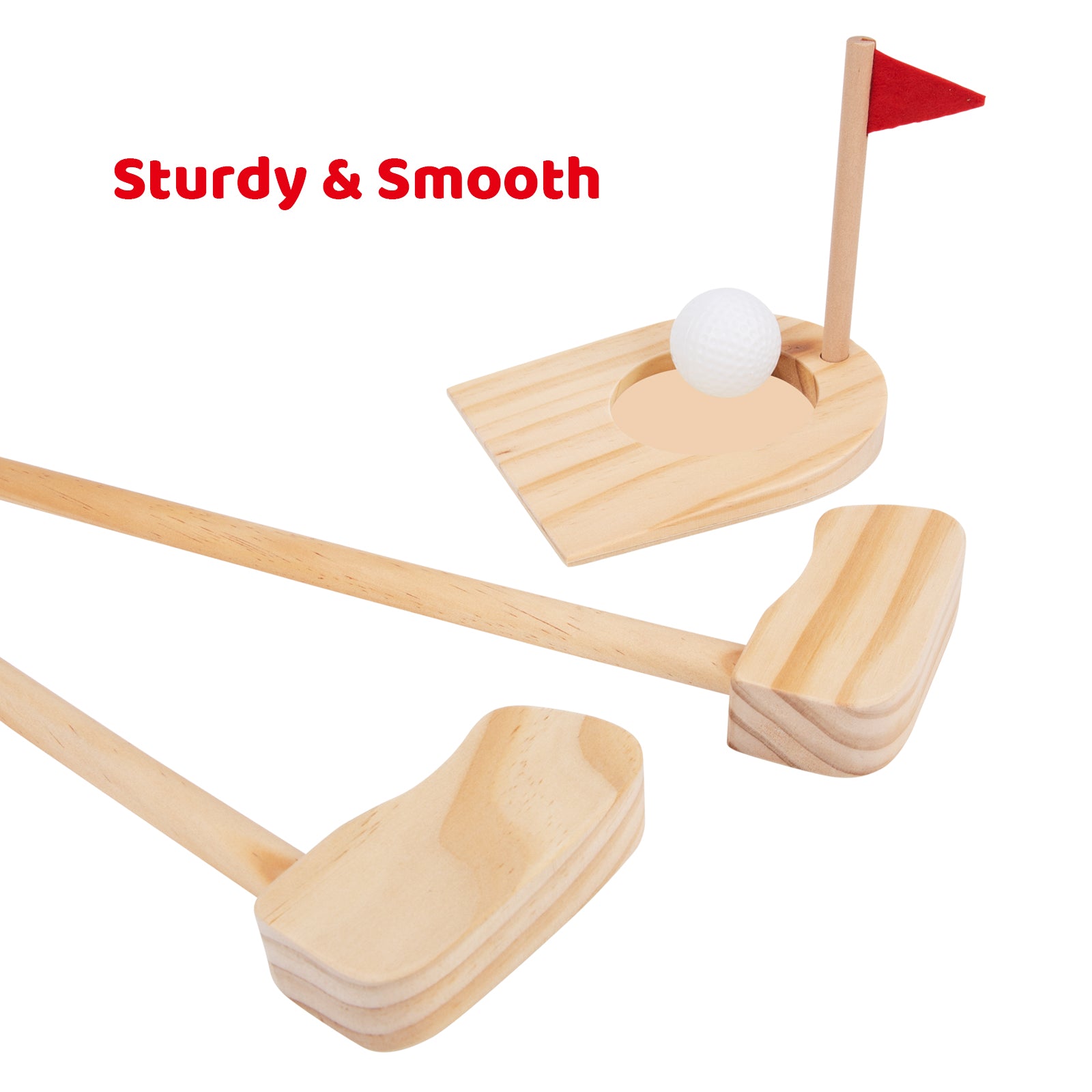 Este juego viene completo con 2 palos de golf de madera, pelotas y accesorios adicionales para hacerlo más divertido.