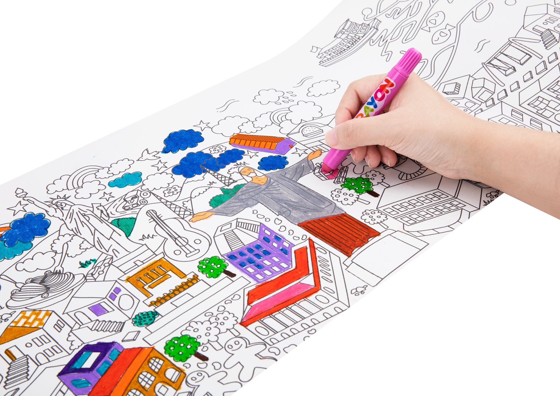 ¡Este rollo para colorear de 600 cm, "Ciudades del Mundo", mantendrá a tus niños y a toda la familia ocupados durante horas!
