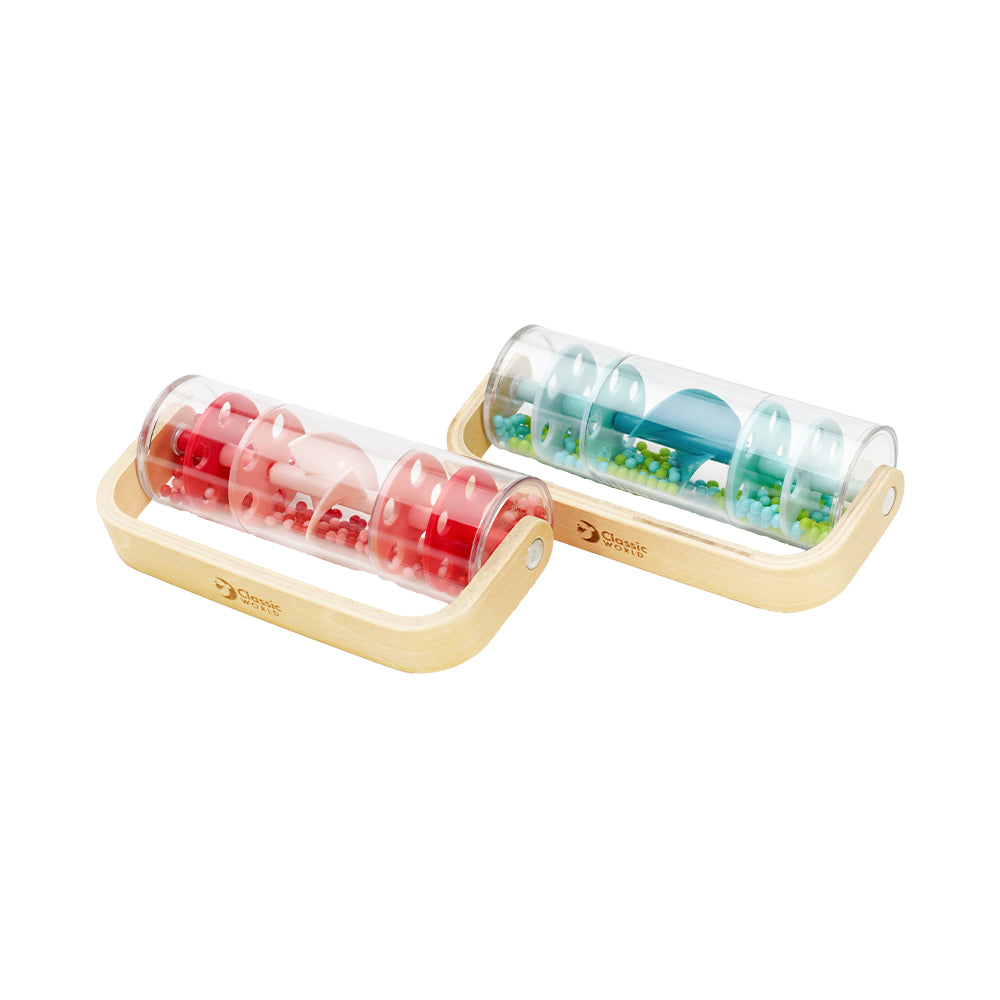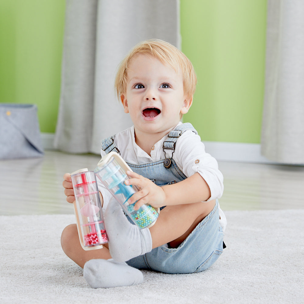 Gira esta lluvia de colores una y otra vez. El sonido de las vibrantes cuentas que caen capturará la atención de tu bebé y estimulará sus sentidos auditivos.