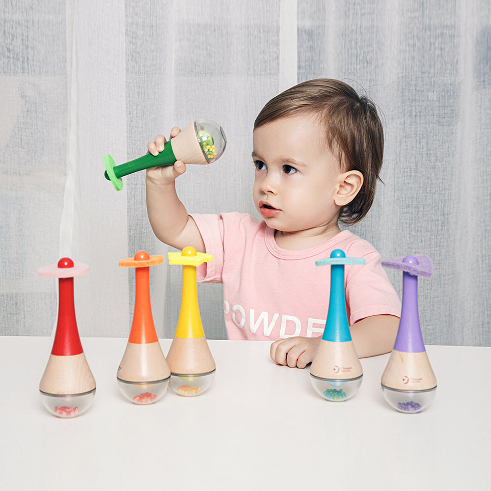 Vamos a jugar con las maracas arcoíris. Puedes crear ritmo de golpes y ver el movimiento de las cuentas cuando las agitas.