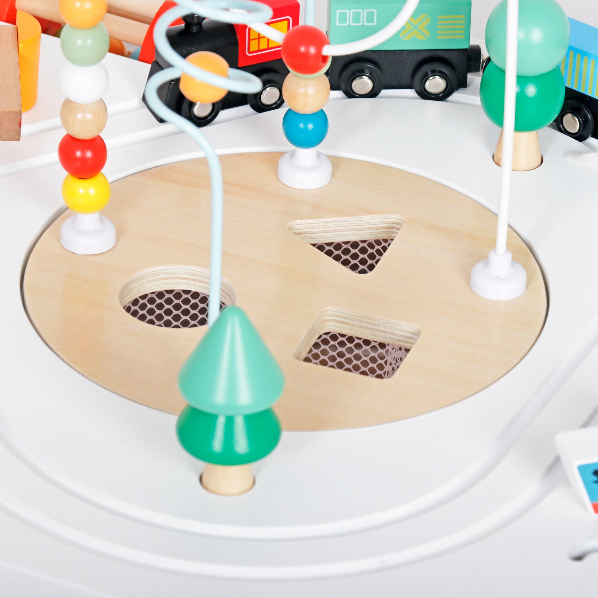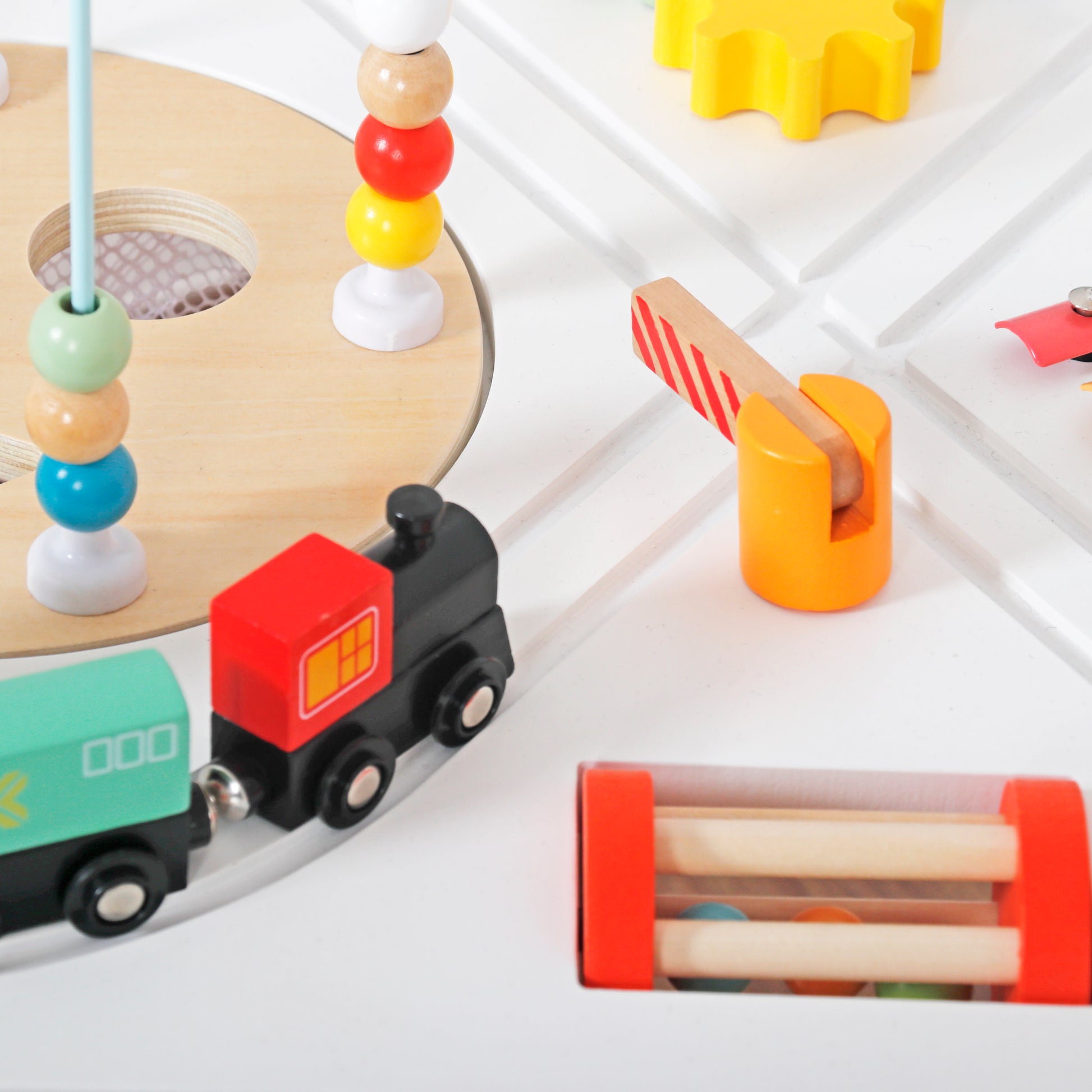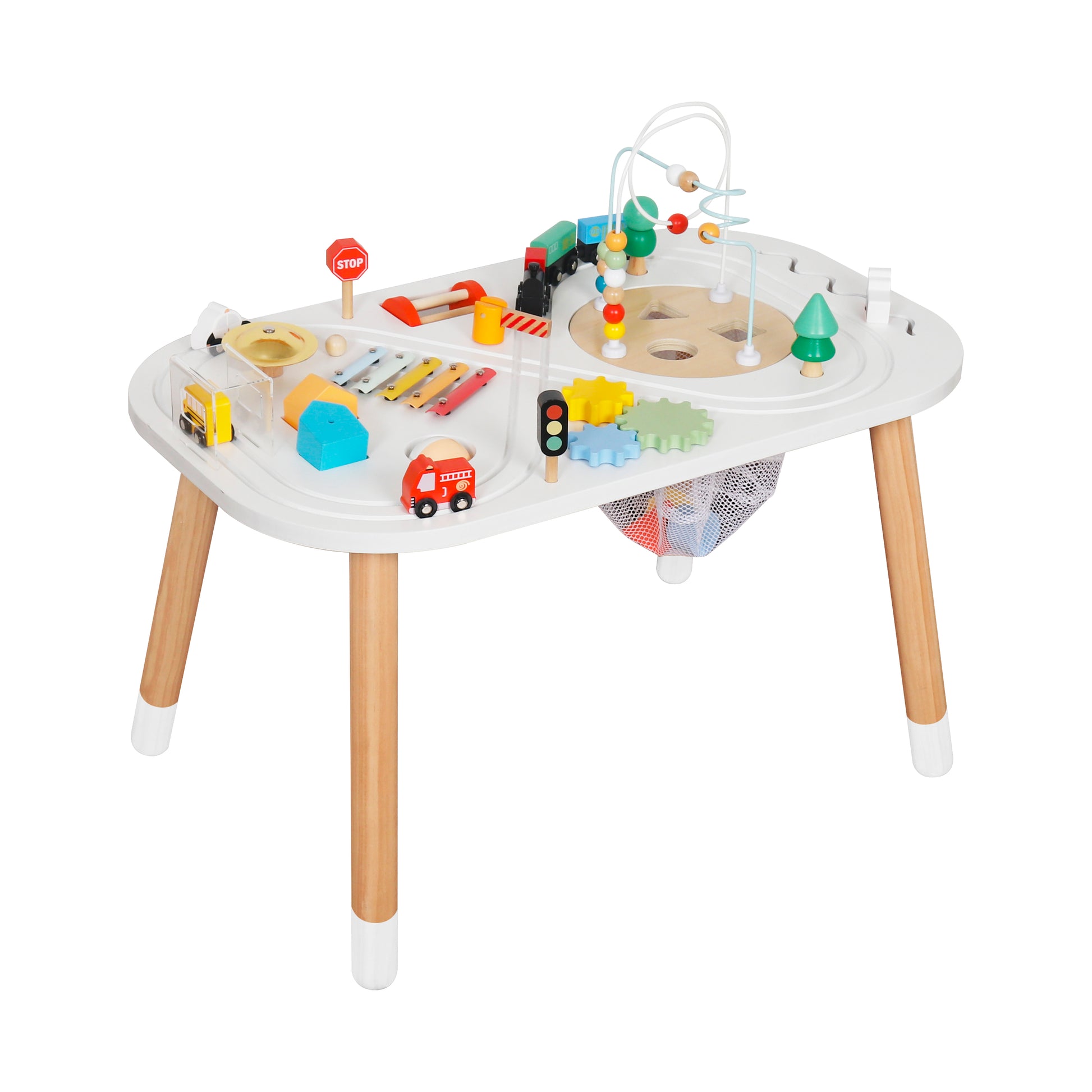 La nueva mesa de actividades de madera es el espacio perfecto para que los niños aprendan y se diviertan al mismo tiempo. Diseñada para estimular la curiosidad, la creatividad y la motricidad, esta mesa ofrece múltiples juegos educativos en un solo juguete.
