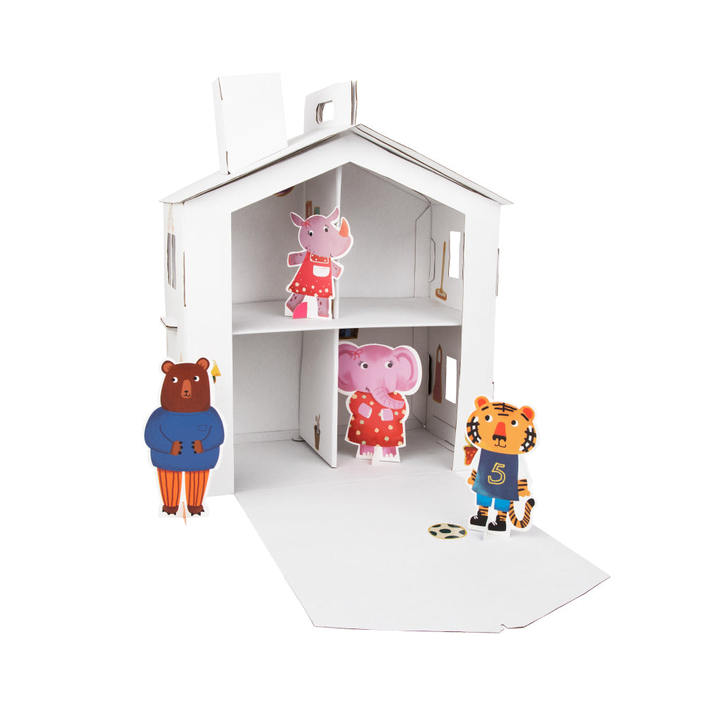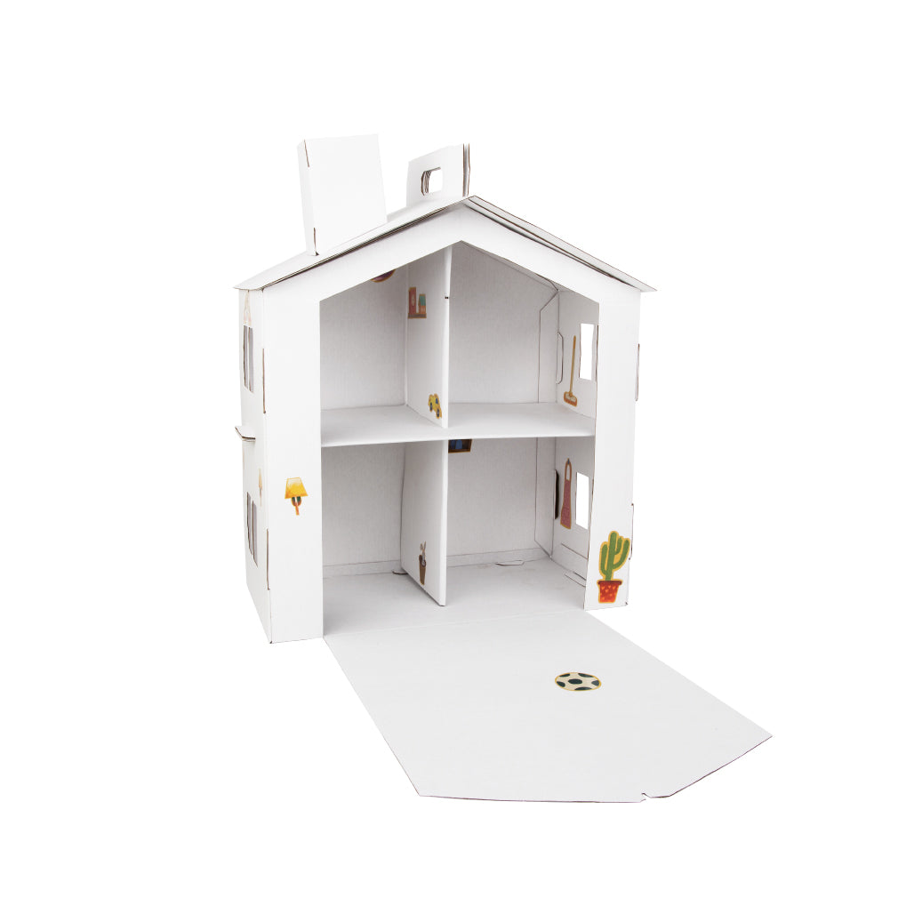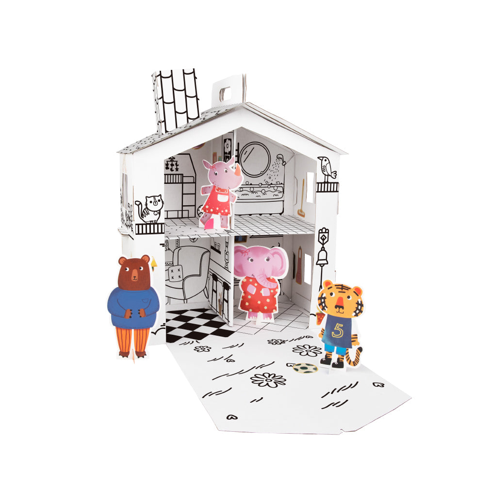 ¡Deja que tu hijo use y mejore sus habilidades artísticas para llenar de color y darle vida a esta casa de juegos navideña! ¡Podrá personalizar su casa como desee! Esta casa de juegos viene con 12 marcadores de colores.