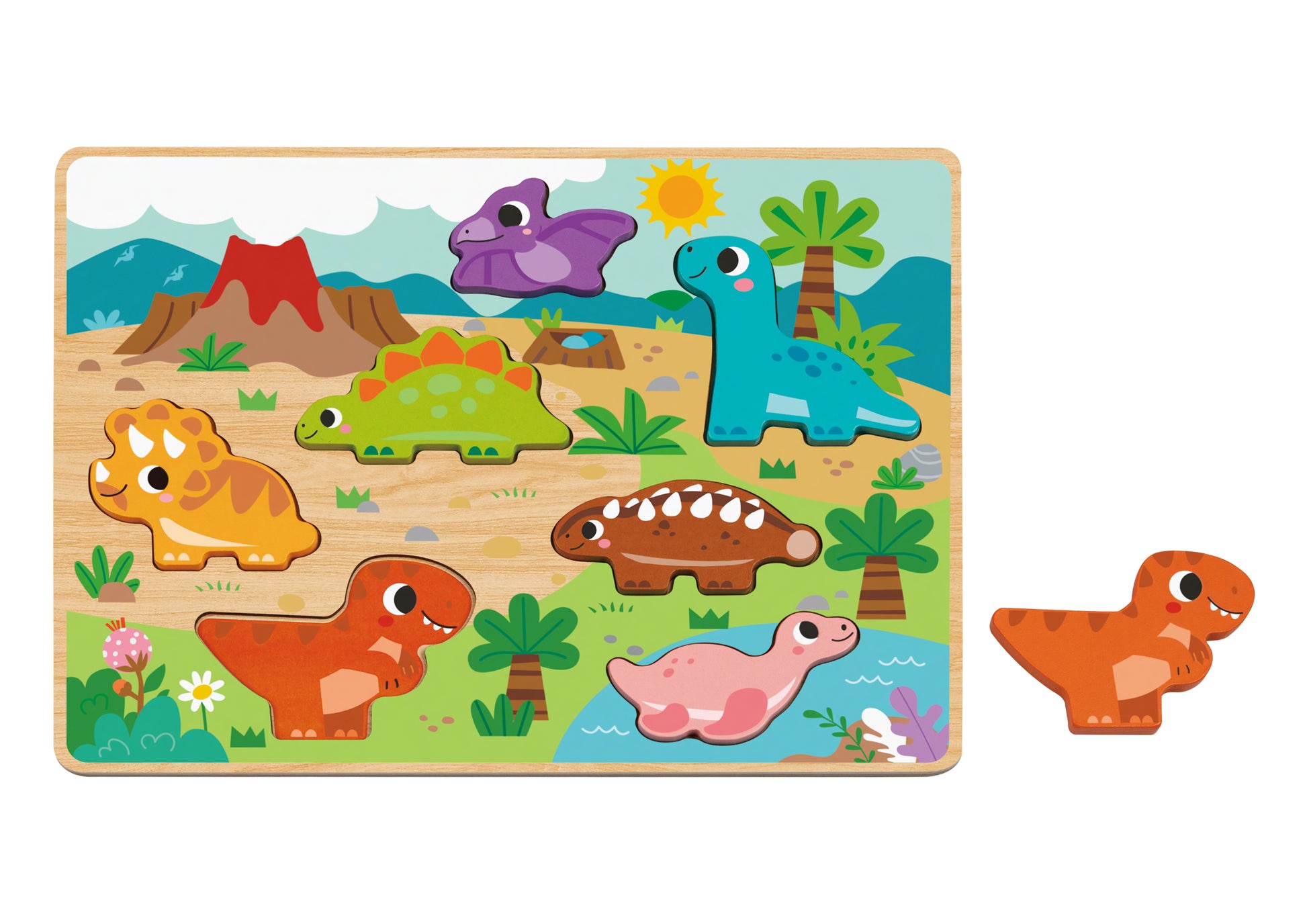 ¡Diversión jurásica garantizada! Este colorido rompecabezas de madera permite a los niños encajar adorables dinosaurios mientras aprenden jugando. 🦕✨