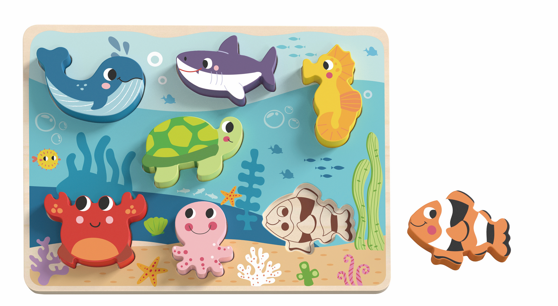 Desafía a tu pequeño con este brillante y colorido rompecabezas grueso. Con adorables animales marinos, intenta hacer coincidir el animal con el contorno del mismo animal en el tablero de abajo. Una vez que hayas emparejado los animales, se encajarán perfectamente en la base.