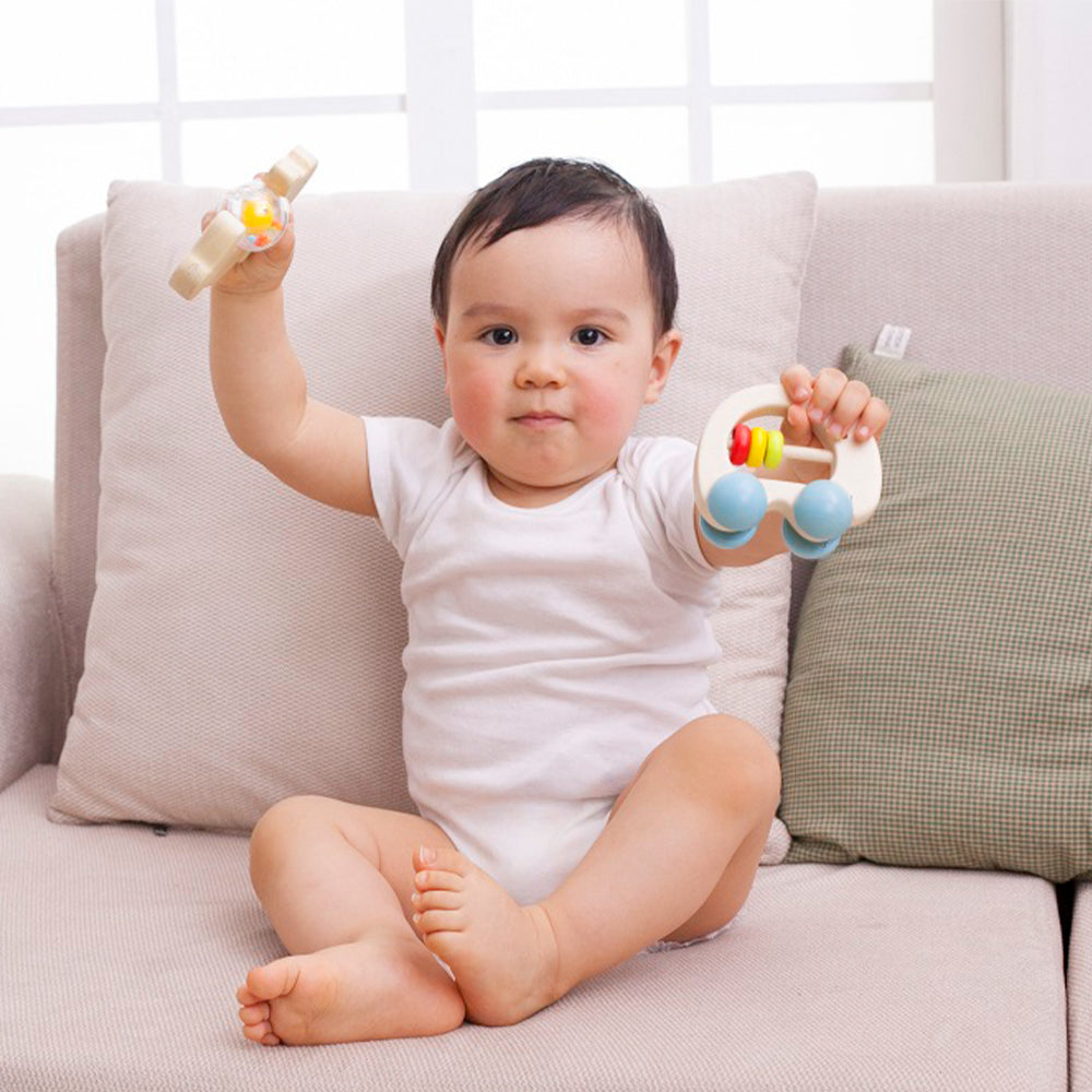 El mango de madera proporciona suficientes oportunidades de agarre para el bebé. Cumple con rigurosas normas de seguridad infantil y es seguro para recién nacidos.