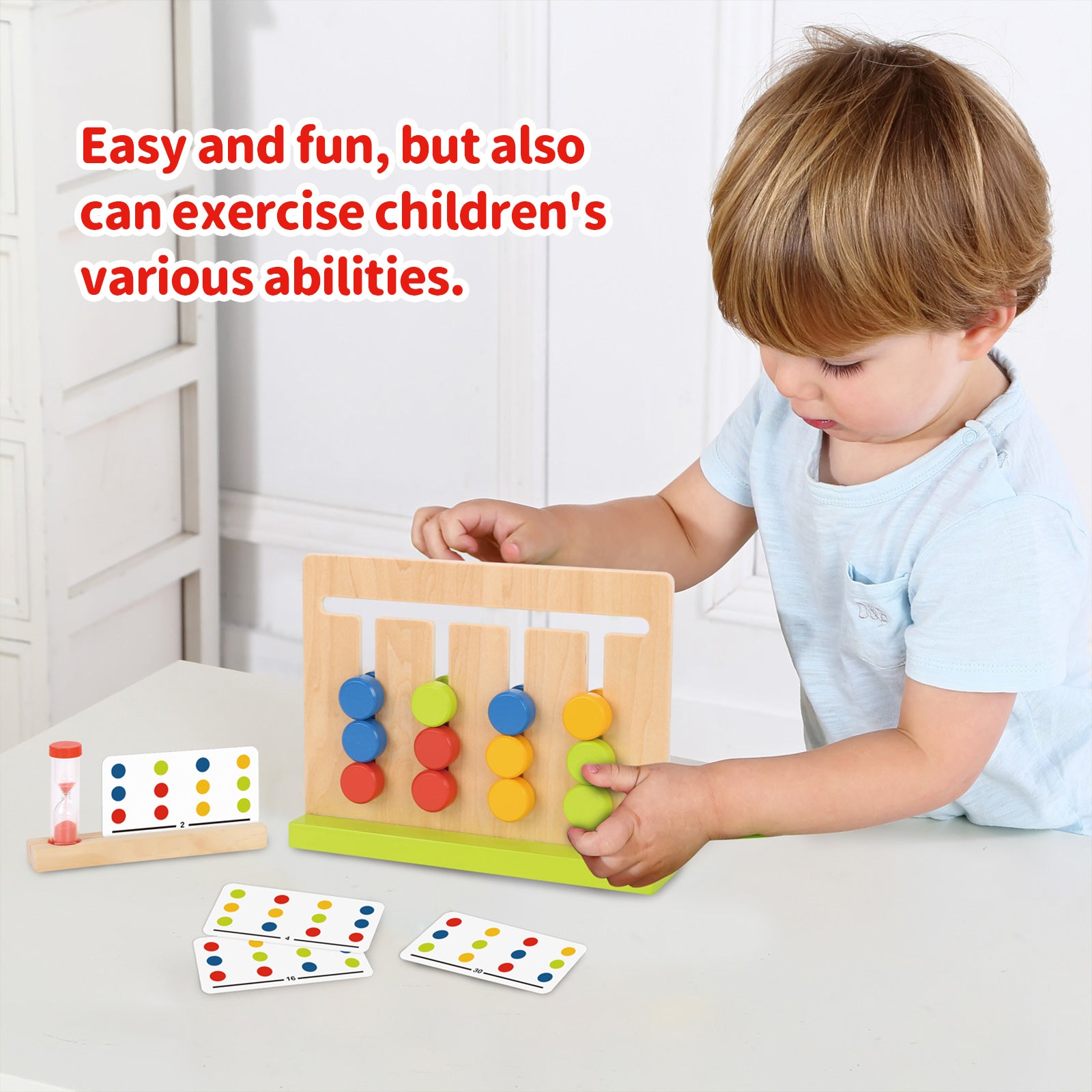 Este juguete clásico de todos los tiempos brindará a tu hijo horas de juego interactivo donde aprenderá los colores básicos y a seguir patrones. Este juguete viene completo con un marco de madera, un temporizador y 30 tarjetas de patrones