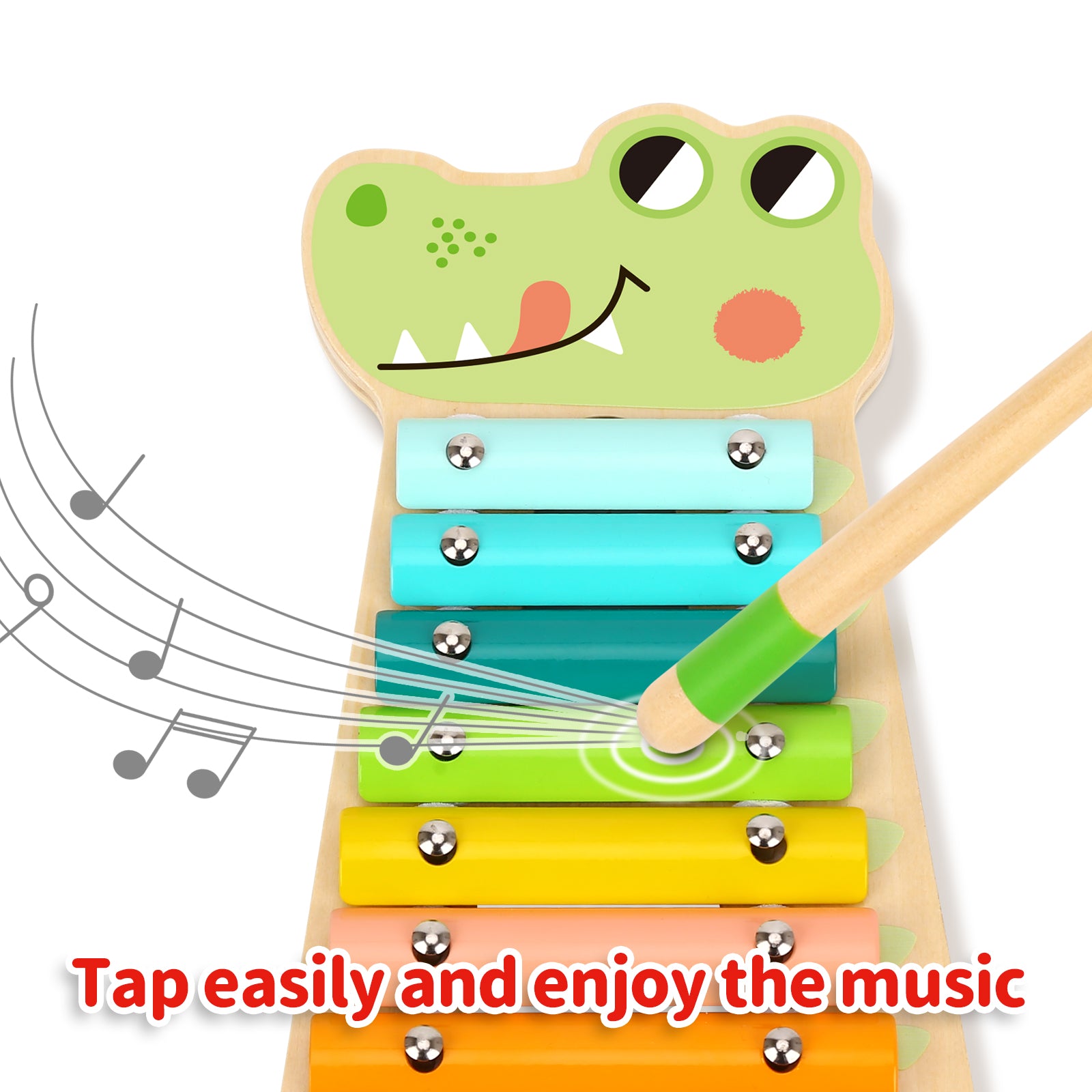 ¡El compañero perfecto para la exploración musical de tus hijos! Nuestro xilófono de cocodrilo combina diversión y aprendizaje en un solo juguete. Con colores vibrantes y teclas en forma de dentadura, este xilófono no solo despierta la curiosidad musical, sino que también fomenta la coordinación mano-ojo. Deja que tus pequeños creen melodías únicas mientras siguen el ritmo del cocodrilo. Una manera encantadora de introducir a los niños en el mundo de la música y el juego creativo.